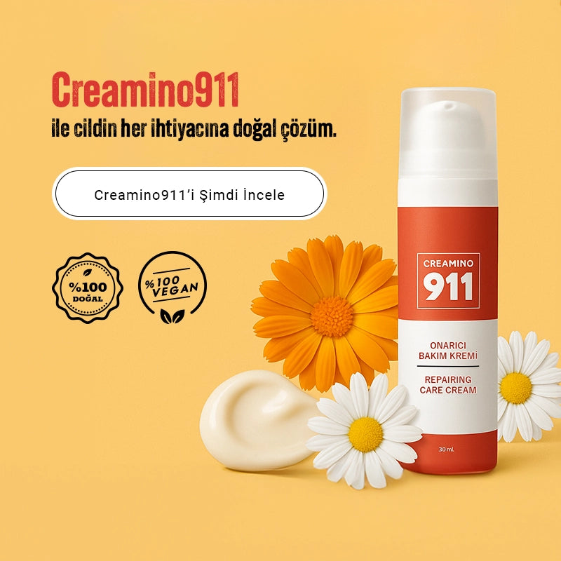 Creamino911, doğal içeriklerle zenginleştirilmiş %100 doğal ve organik cilt bakım kremidir. Zeytinyağı, jojoba yağı, aloe vera ve daha fazlasını içeren Creamino911, cilt yaralarına, güneş yanıklarına, böcek ısırmalarından kaynaklı şişliklere karşı etkilidir, ciltteki kaşıntı ve kızarıklıkları giderir. Morlukları azaltır ve ciltteki kollajen üretimini artırarak cildinize doğal bir parlaklık kazandırır.